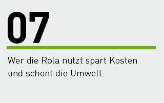 Als unser Kunde und Benutzer der Rola tragen Sie wesentlich zur Verkehrsverlagerung von der Strasse auf die Schiene bei. Sie vermindern die Abgabe von CO2, Stickoxide und Feinstaub und schonen damit die Umwelt. Unser Umweltzertifikat zeigt Ihre Einsparungen pro Jahr auf und legt das Umweltbewusstsein Ihrer Firma dar.